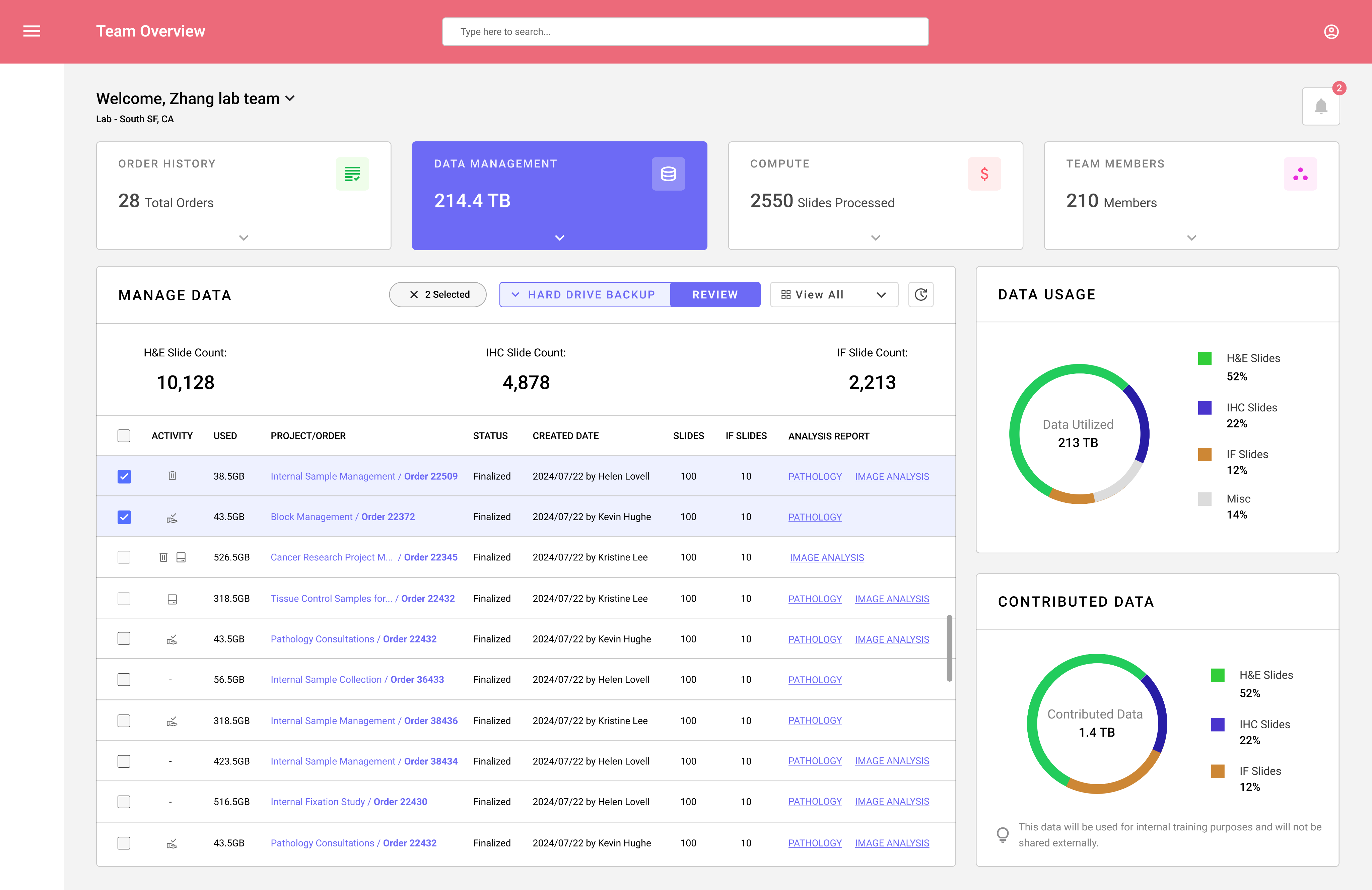 Slides analyzed across H&E, IHC