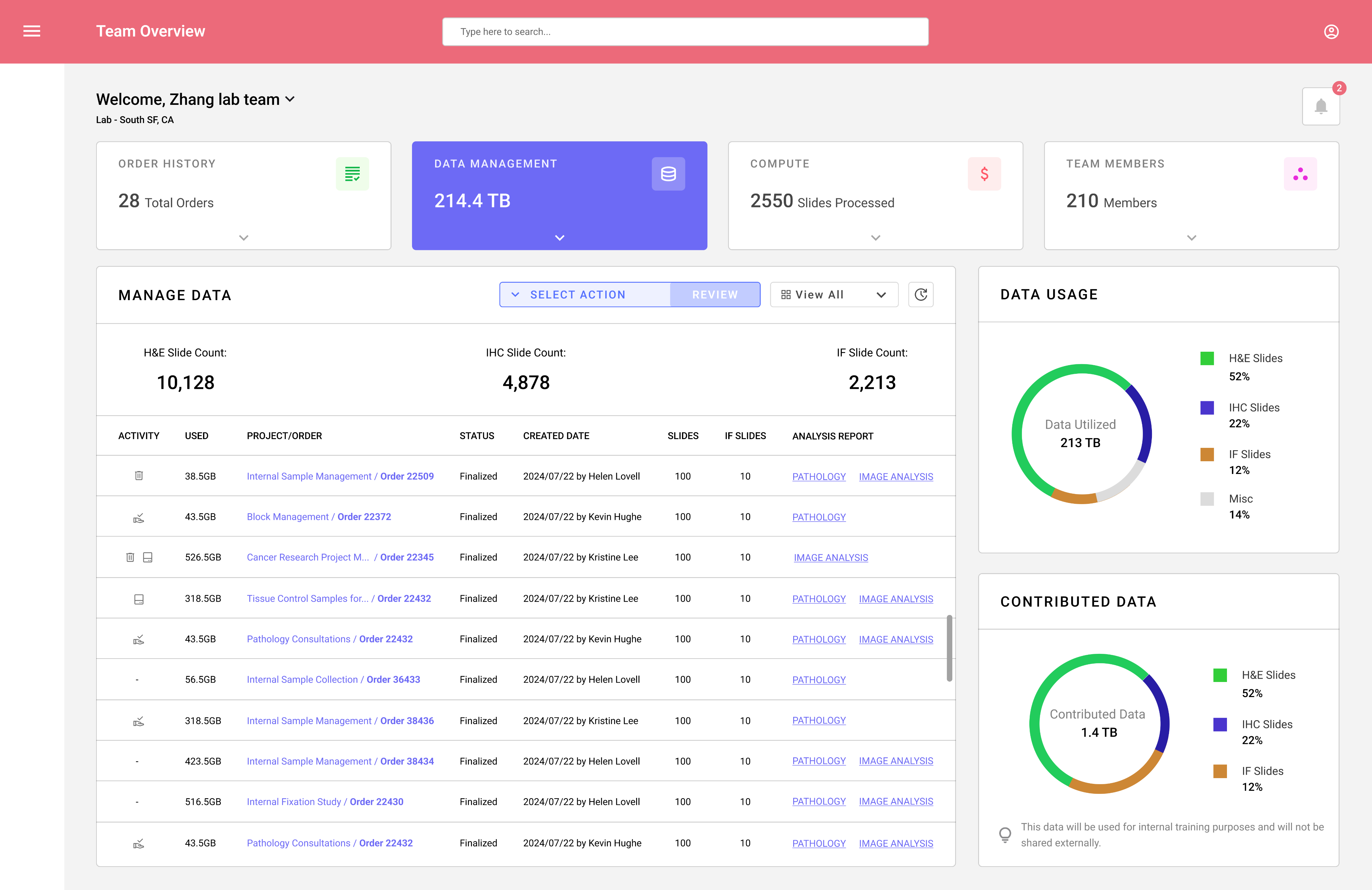 Slides analyzed across H&E, IHC